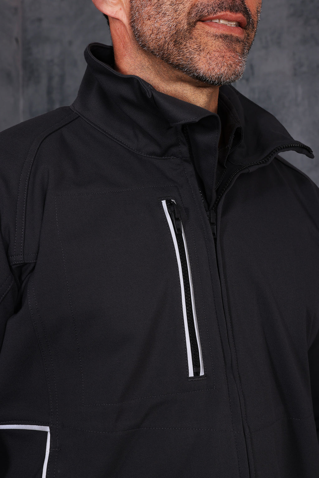 Restez en sécurité et élégant dans la veste softshell INHERENT résistante aux arcs et aux flammes, coupe-vent, hydrofuge et confortable STRATA®.