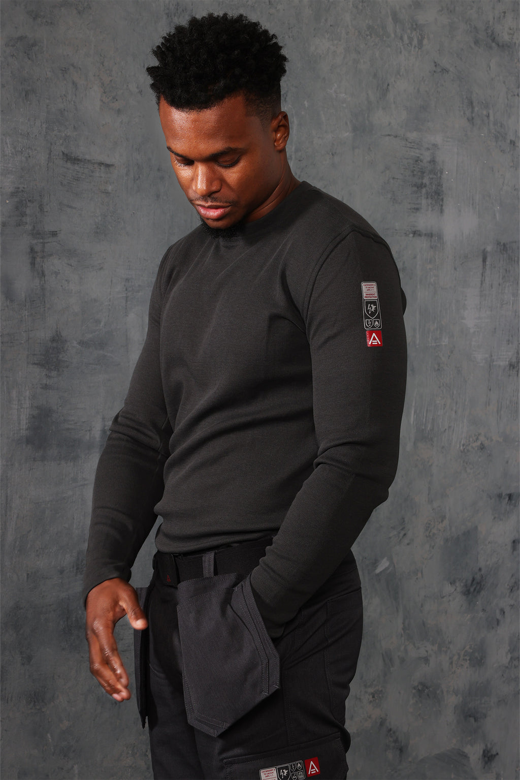 The added underarm panel has been fitted and developed to give greater freedom of movement through the sleeve and shoulder for working overhead and on the ground without exposing any skin.